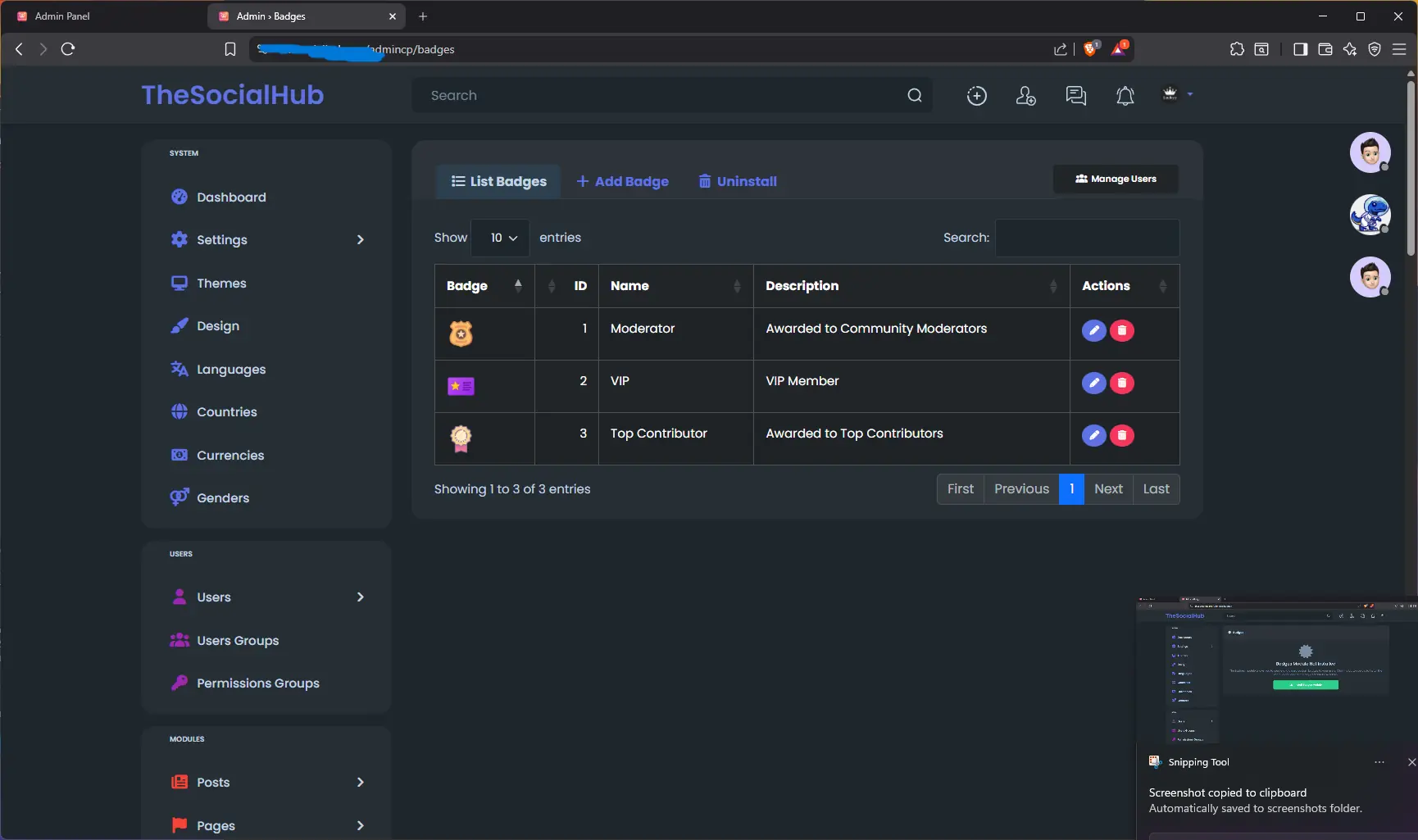 Reward your community members with custom badges! This module adds a fully-featured badge management system to your Sngine social network.