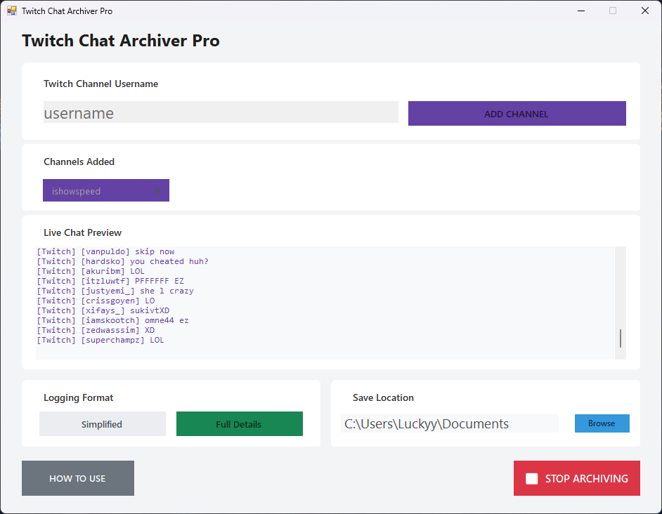 Twitch Chat Archiver Pro is a powerful, user-friendly Windows desktop application designed for streamers, content creators, researchers, and Twitch enthusiasts who need to archive and preserve chat messages from Twitch streams in real-time.